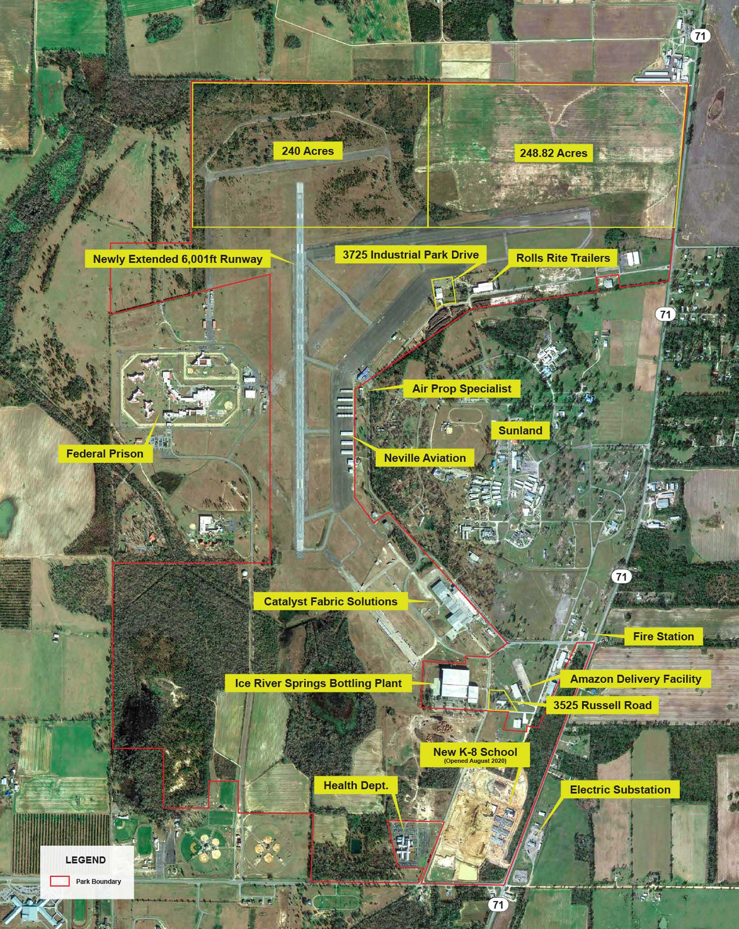 Known as the Ice River Springs Bottling Plant this huge building was built by Russel Athletic and was last used as a water bottling plant. It has many features including heavy power, large employee entrance and canteen, a fenced truck court and battery charging area with 5-ton pendant controlled bridge crane. Of course, the municipal airport is just outside your back door.